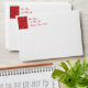 Card envelope with an insert of white snowflakes on holiday red background. Customizable return address too.