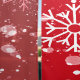 White snowflakes and snow in a backdrop of ruby red