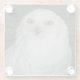 For owl collectors! Protect your table top from water marks and stains with this decorative, glass beverage coaster that features the photo image of a white Snowy Owl with yellow eyes.
