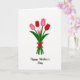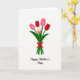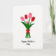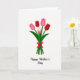 This card features a stylized bouquet of spring flowers centered on a bright white background, with rich red and soft pink blossoms arranged close together like friends leaning in for a photo ❤️. Five main blooms stand out, and a creamy white flower sits near the middle, adding a gentle contrast that feels like a quiet, affectionate touch. The petals have sharp angles softened by smooth curves, giving the flowers a modern, graphic look while still feeling tender. Green stems and wide leaves gather neatly at the base, tied with a deep red ribbon in a simple bow that suggests a thoughtful gift. The open white space around the bouquet keeps the scene airy and lets the colors feel warm and welcoming 🌼. Beneath the flowers, the text “Happy Mother’s Day” appears centered in a flowing letter style, set in dark gray for easy reading. Subtle shading on the petals adds a little depth without making the design look realistic. The ribbon’s bow sits just below the clustered leaves, with two short tails pointing slightly outward.