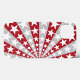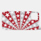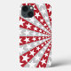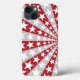 A phone case with a pattern of red and gray stripes radiating from the center, overlaid with white stars.