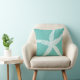 White Starfish Pattern Beach Teal Blue Nautical Throw Pillow