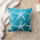 White Starfish Patterns Luxury Glittery Teal Blue Throw Pillow