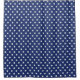 Shower Curtain with a pattern of white stars on a navy blue background.