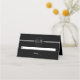 This classy and elegant White Stripe and Black Initials Wedding Escort Place Card showcases a sophisticated design with a white stripe accentuating a circular frame with two small hearts that displays the initials of the couple against a sleek black background. The reverse side of the card includes the names of the newlyweds, adding a personalized touch to the overall aesthetic of the escort card.