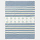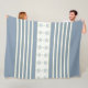 White Stripe With Blue Floral Accented Fleece Blanket