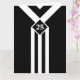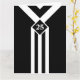 Bold mostly black geometric pattern features three alternating white and black chevrons that end at a black diamond outlined with white. It looks like a stylized medal hanging from a ribbon. The diamond contains a customizable monogram. Three white stripes extend from the bottom of the diamond to the base of the vertical design. The outer thirds of the image are black.