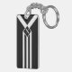 White Stripes and Chevrons on Black with Monogram Keychain
