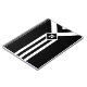 Bold mostly black geometric pattern features three alternating white and black chevrons that end at a black diamond outlined with white. It looks like a stylized medal hanging from a ribbon. The diamond contains a customizable monogram. Three white stripes extend from the bottom of the diamond to the base of the vertical design. The outer thirds of the image are black.