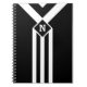 White Stripes and Chevrons on Black with Monogram Notebook