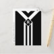Bold mostly black geometric pattern features three alternating white and black chevrons that end at a black diamond outlined with white. It looks like a stylized medal hanging from a ribbon. The diamond contains a customizable monogram. Three white stripes extend from the bottom of the diamond to the base of the vertical design. The outer thirds of the image are black.