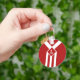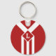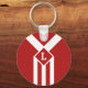Stylish geometric pattern features bold white stripes on a red background. Three alternating white and red chevrons end at a red diamond outlined with white. It looks like a stylized medal hanging from a ribbon. The diamond contains a customizable monogram. Three white stripes extend from the opposite side of the diamond to the edge of the design. The outer thirds of the pattern are red.
