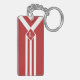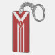 Stylish geometric pattern features bold white stripes on a red background. Three alternating white and red chevrons end at a red diamond outlined with white. It looks like a stylized medal hanging from a ribbon. The diamond contains a customizable monogram. Three white stripes extend from the opposite side of the diamond to the edge of the design. The outer thirds of the pattern are red.