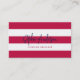 White Stripes and Custom Color Modern Script business card that features editable background color on the front (click customize and change the background color from pink to another color) and on the back.