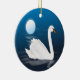 WHITE SWAN FLOATING IN WATER WITH A FULL MOON