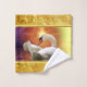 White Swan in a lake with a orange gold sunset. With a gold foil texture background.