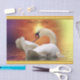 White Swan in a lake with a orange gold sunset. With a gold foil texture background.