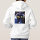 Basic white sweater with hood, of cotton, with text on the right front and image related to the photograph on the back.