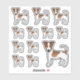 Destei's original cartoon illustration of a white and tan / brown and white smooth coat Jack Russell Terrier breed dog. The design is placed 12 times on the sheet in three different sizes. There is one bigger dog, three medium size dogs and eight small size dogs.