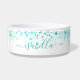 White teal glitter green name script bowl