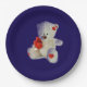 White Teddy Bear, oh so cute, on navy blue solid color.
