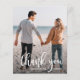 Small 4.5" x 5.6" affordable paper features your photo, the words Thank You and your names in chic lettering with your thank you note on the back. 110 lb paper and your choice of 3 sizes. **WHITE ENVELOPES ARE OPTIONAL ON THE ORDER PAGE. Be sure to double-check your order before adding it to your cart as what you see on the screen is what will be printed. The Live Design Service can help you with your design layout if needed.