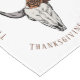 This Western Thanksgiving or Friendsgiving custom table runner features a hand-drawn Western cow skull adorned with roses illustration in black ink, with the editable text, "Thankful, Grateful & Blessed". Personalize with your event and year. The center features the editable text, "Happy Thanksgiving" in script. Elegant white background.