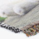 A quality printed throw has its advantages. This is a much finer weave throw than its loopier cousins, and though lighter, it is worth the investment for custom room accessorizing. The back is much prettier than the typical brown, and the fringe on the long sides very vivid, the selvage nicely done. Before photographing, I washed the throw in cold water, delicate, with a thicker woven throw the same size. On tumble dry low, this throw was dry in half the time as the other. This is a very practical quality if you use throws for furniture covers or to wrap up in frequently. The sleekness of the fabric makes it a great layer for accenting or protecting without the feeling of sitting on too much stuff. Perfect for napping or when you feel a light chill coming on. The color printing is beautiful and on this fabric, matched the design and color of my Photoshop image. This is an advantage for blending room fabrics and colors. The fringe on the short sides prints the colors from the design image and therefore varies from the side fringe. I streaked a white fractal line through the plaid pattern to give the illusion of weaving. This printed as crisp as an illusory thread, and put some white in the short side fringe, showing another advantage of print vs loomed- for artistic purposes, line lines, detail, and color integrity can be planned and preserved. My loomed throws have color limitations and more of a needlepoint texture. Print throws reproduce an exact image. The throw felt a little stiff straight out of the package, but this went away in the first delicate wash. Of course I searched the wash water for ink or bleeding and there was none.