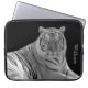 Stylish 15" laptop case with a photograph of a white tiger, on a black background. White text running up the right front side, is ready to personalize for yourself or as the purrrfect gift idea to any cat lover.