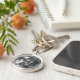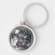 A captivating keychain with a close up head shot of a rare and beautiful white tiger.