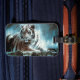 White Tiger w/ leather strap Stand out in the baggage carousel with a custom luggage tag from Zazzle! No larger than a business card and constructed of 100% acrylic, this luggage tag is ready to stand-up to the travel demands of any road warrior or adventure seeker. Produced using the AcryliPrint®HD printing process, your baggage tag shows designs, text, and photos in vibrant clarity and brilliant colors. Customize with your personal information on each side and escape bag mix ups for years to come. Dimensions: 2" x 3.5" (business card size). Made of ultra-durable acrylic. UV resistant and waterproof. Leather luggage strap included.