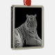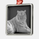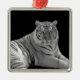 Beautiful square metal ornament, with a black and white photograph of a white tiger. Great on your Christmas tree or as other decorative uses around the house, like a fan pull or hanging on the wall. Makes a great gift for anyone who loves fine art.