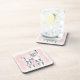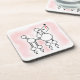 Hard plastic coaster with a snooty poodle illustration. A stylized poodle with pom poms and a pout on a powdery pink background.