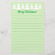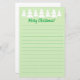 Pretty lined stationery featuring outline drawings of white Christmas trees outlined in green. The text and lines are dark green, and the background color is light green. The text of Merry Christmas can be easily customized on the template form. Thank you for shopping at CherylsArt on Zazzle.