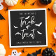 Add a bold and stylish touch to your Halloween party with these festive paper napkins. The design features Trick or Treat in crisp white script typography with playful bat silhouettes on a black background. Personalizable text areas at the top and bottom allow you to include a family name, party title or year, such as Halloween Party 20YY. A modern and minimalist choice, perfect for seasonal gatherings, spooky celebrations and creating a memorable Halloween table setting.