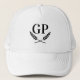 White trucker hat with laurel crest monogram logo. Personalize with your own name initials. Great for sports and events.