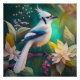 White Tufted Teal Wing Jay Fantasy Bird Poster
