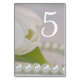 White Tulip and Pearls Spring Wedding Table Number