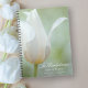 Invite guests to leave a note in remembrance of your loved-one after their passing with the elegant White Tulip Spring Funeral Memorial Guest Book. This classy custom flowery celebration of life tribute notebook features a close up digitally painted floral photograph of a white tulip flower blossom on the stem with a blurred green botanical garden in the background. Personalize it with birth and death date and name. Perfect inspo or idea for a March, April or May springtime season event.
