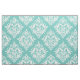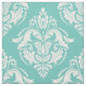 White & Turquoise Floral Damask Geometric Pattern Fabric
