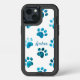 White Turquoise Textured Paw Print Personalized Otterbox iPhone Case