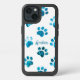 White Turquoise Textured Paw Print Personalized Otterbox iPhone Case