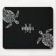 White Turtle Tribal Black Background Monogram Mouse Pad