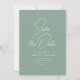white typography sage green design with stylish modern lettering. Our beautiful personalized wedding save the date cards feature a stunning design that complements any wedding theme. The front of the card features a personalized text along with a beautiful image.