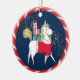 This cute ornament showing a white unicorn with brightly wrapped Christmas gifts on its back would make a perfect gift for any child who loves unicorns. The happy unicorn wears a traditional red and white Santa coat, and walks in front of a cascade of tiny gold and silver stars. The image shows up clearly against the dark blue background, and is framed with a pretty red and white candy cane stripe pattern. The back of the ornament has the same striped frame, and several text fields for you to customize. You make easily change the "Happy New Year" text to a child's name, if you'd prefer. Be sure to see the matching ornament with Santa riding the unicorn in our store.