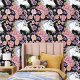 A white unicorn with pink, peach and lavender coloured flowers all in a backdrop of black