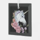 White Unicorn Flowers Pink Roses Glass Ornament