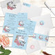 A romantic fantasy-themed wedding design featuring a graceful white unicorn surrounded by soft pastel blooms and lush greenery. This enchanting illustration captures a dreamy fairytale aesthetic, perfect for couples who love magical themes, whimsical florals, or elegant fantasy artwork.