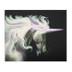 White unicorn side profile with purple int he mane set in a backdrop of black
