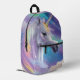 Enter a magical world with this majestic unicorn floating in a purple sky filled with aurora borealis colors, puffy white clouds and cosmic sparkles. This dreamy print makes a wonderful gift for unicorn lovers, daydreamers, or anyone who loves whimsical art. Unique backpack for girls and boys of any age. Magical for school or personal use.